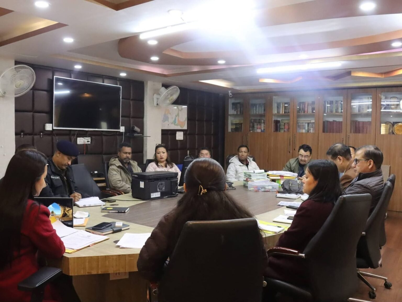 नाम्ची, 24 मार्च । नाम्ची जिल्लाकी जिल्लापाल एवं जिल्ला चुनाउ अधिकारी अनुपा तामलिङले आज नाम्ची जिल्ला प्रशासनिक केन्द्रमा विभिन्न राजनीतिक दलका प्रतिनिधिहरूसॅंग आगामी नगरपालिका चुनाउ 2026 लाई लिएर आयोजित एक बैठकको अध्यक्षता गरिन्। बैठकमा एडीसी (मुख्यालय) सुभाष घिमिरे, एडीसी त्रिसाङ तामाङ, एएसपी बिकास तिवारी लगायत एसकेएम, सीएपी सिक्किम, एसडीएफ र भाजपाका प्रतिनिधिहरू उपस्थित थिए।