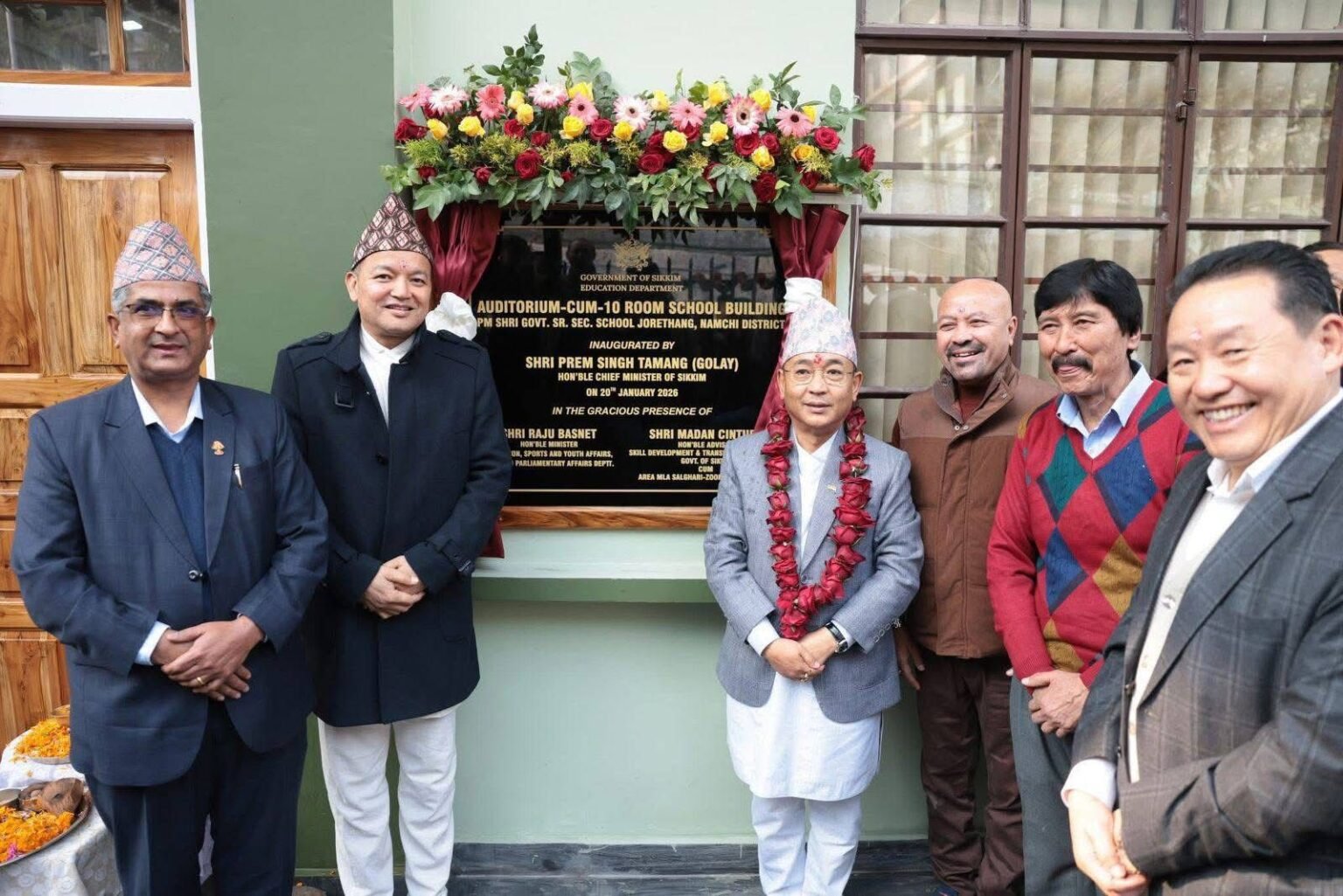नाम्ची, 20 जनवरी। मुख्यमन्त्री प्रेमसिंह तामाङले आज ७१औँ माघे सङ्क्रान्ति मेलामा सहभागी हुनुअघि जोरथाङस्थित पीएम श्री सरकारी वरिष्ठ माध्यमिक विद्यालयको नव–निर्मित प्रेक्षागृहसहित १० कोठे विद्यालय भवनको विधिवत उद्घाटन गरे। यस अवसरमा शिक्षा मन्त्री राजु बस्नेत, शहरी विकास विभाग मन्त्री भोजराज राई, विधायक तथा प्रमुख संरक्षक मदन सिन्चुरी, विधायक एलएन शर्मा तथा अन्य गणमान्य व्यक्तिहरू पनि उपस्थित थिए।उल्लेखनीय छ, नव–उद्घाटित प्रेक्षागृहसहित १० कोठे विद्यालय भवन आधुनिक सुविधासहित निर्माण गरिएको छ, जसले शैक्षिक, सांस्कृतिक तथा सह–पाठ्यक्रम गतिविधिहरूलाई सशक्त बनाउने उद्देश्य राखेको छ। ३०० जनासम्म अट्ने क्षमताको प्रेक्षागृहमा पीएस सिस्टम तथा पूर्ण रूपमा कार्यशील वातानुकूलित (एसी) युनिटहरू जडान गरिएको छ। यस पूर्वाधारमा आठवटा कक्षा कोठा, रसायनशास्त्र तथा जीवविज्ञानका प्रयोगात्मक कक्षाका लागि दुईवटा प्रयोगशाला, ग्रीन रुम तथा पर्याप्त सरसफाई सुविधाहरू पनि समावेश छन्।उद्घाटन कार्यक्रममा विद्यालयकी प्रधानाध्यापिका निशा राईले विद्यालयको पूर्वाधार सुदृढीकरणका लागि निरन्तर सहयोग पुर्‍याएकोमा मुख्यमन्त्री, शिक्षा मन्त्री तथा विधायकप्रति हार्दिक कृतज्ञता व्यक्त गरिन्। उनले नयाँ संरचनाले विद्यालयको शैक्षिक वातावरण सुदृढ़ पार्नुका साथै संस्थागत ढाँचालाई अझ मजबुत बनाउन महत्वपूर्ण भूमिका खेल्ने बताइन्। विद्यार्थीहरूले शैक्षिक क्षेत्रमा, राष्ट्रिय स्तरका खेलकुद तथा विभिन्न सह–पाठ्यक्रम गतिविधिहरूमा हासिल गरेका उल्लेखनीय प्रगतिबारे पनि उनले प्रकाश पारिन्।शिक्षा विभागका पीसीई एवं सचिव चेतराज मिश्रले परियोजनासम्बन्धी प्राविधिक विवरण प्रस्तुत गरे। कृतज्ञताको प्रतीकस्वरूप विद्यालय प्रबन्धन समितिले मुख्यमन्त्री र शिक्षा मन्त्रीलाई स्मृति चिन्ह प्रदान गरेको थियो। उद्घाटनपछि मुख्यमन्त्रीले विद्यालयका नव–निर्मित कक्षा कोठा तथा प्रयोगशालाहरूको भ्रमण गरे।