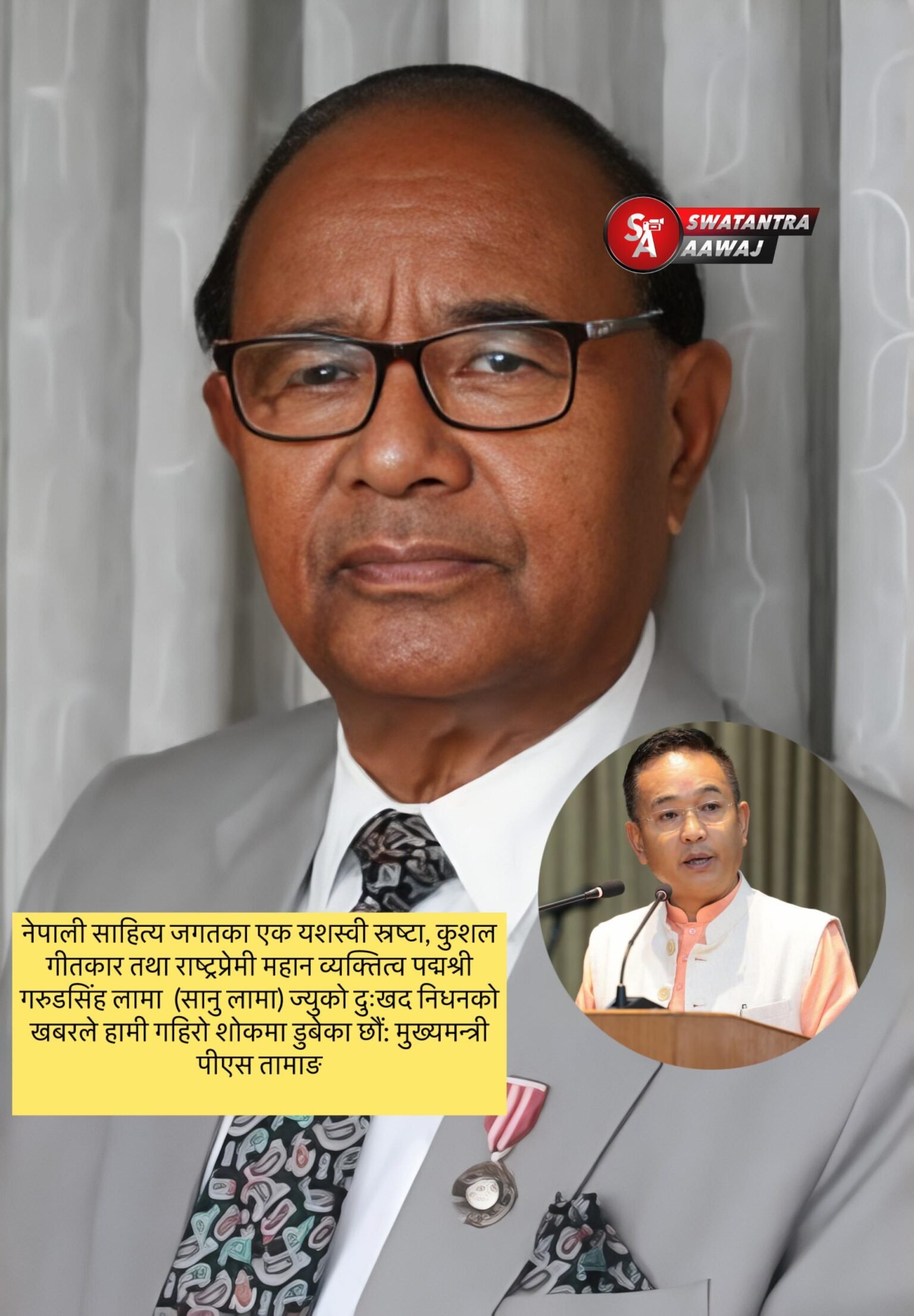 Swatantra Aawaj > Blog > Latest News > SA Nepali > मुख्यमन्त्री प्रेमसिंह तामाङले वरिष्ठ साहित्यकार सानु लामाको निधन गहिरो शोक प्रकट गरे
