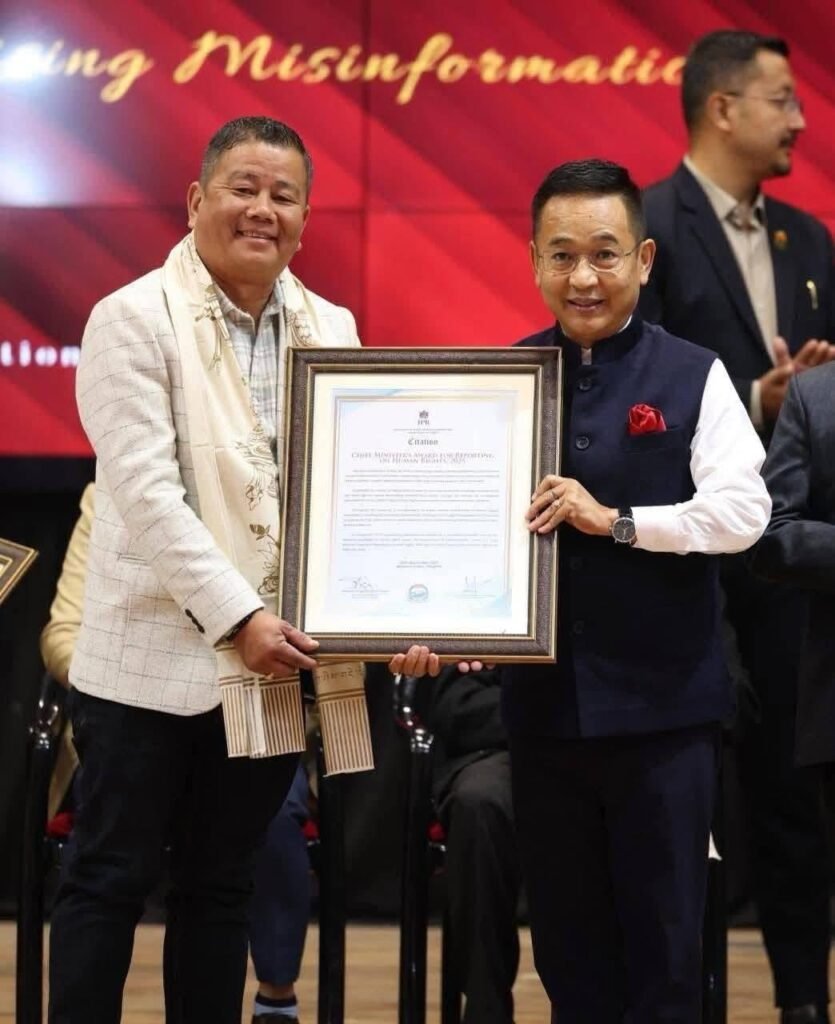 यसैगरी, वरिष्ठ पत्रकार अम्बर गुरुङलाई आज ‘वाईएन भण्डारी उत्कृष्ट पत्रकारिता पुरस्कार 2025’ ले अभिनन्दित गरियो। हिमालय दर्पणका सिक्किम संवाददाता पत्रकार गुरुङलाई मुख्यमन्त्री तामाङको बाहुलीद्वारा अंगवस्त्र, प्रशस्ति पत्र, स्मृति चिह्न र दुई लाख रूपियॉंको चेक अर्पण गरियो। अभिनन्दित पत्रकारले आफ्नो सम्बोधनमा मुख्यमन्त्री, आईपीआर विभाग, प्रेस क्लब अफ् सिक्किम र आफ्नो परिवारप्रति निरन्तर समर्थनको लागि आभार प्रकट गरे।