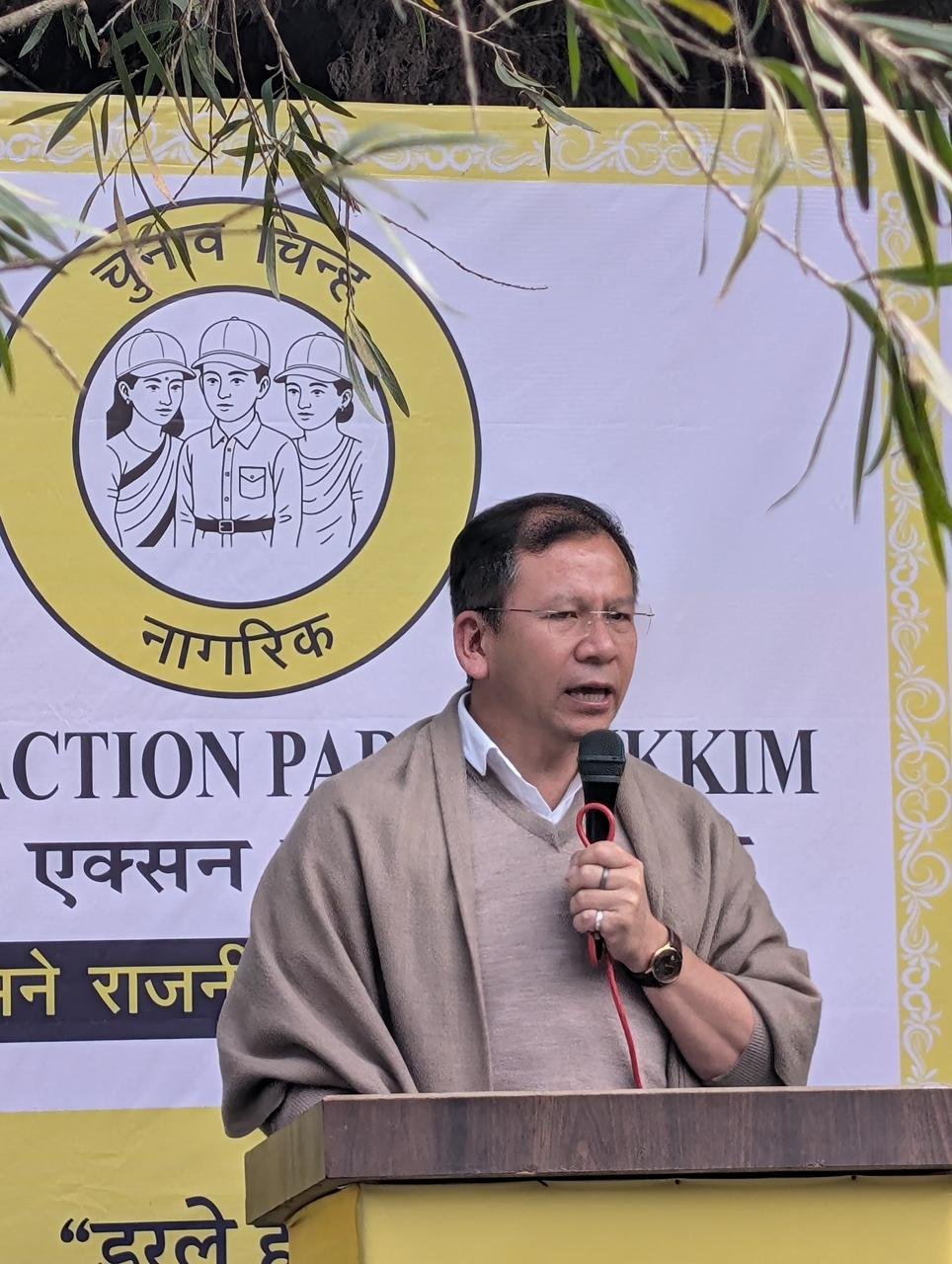 सिक्किमको इतिहास स्मरण गर्दै उनले विश्वका धेरै देशहरू उपनिवेशवादको चपेटामा परेको बेला सिक्किमजस्तो सानो देश स्वतन्त्र र सार्वभौम रहेको उल्लेख गरे। तर, आजको अवस्थामा नेतृत्वले राज्यका सम्पत्ति बेच्दै ऋणको पहाड़ खडा गरेको र राज्यलाई आत्मसमर्पणको अवस्थामा पुर्याएको उनले गम्भीर आरोप लगाए।