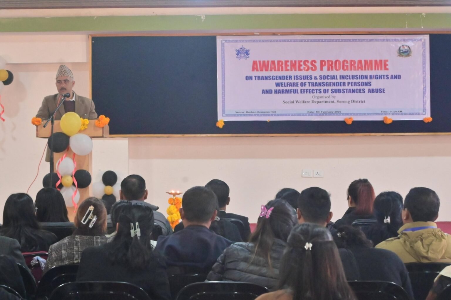 SORENG: The Social Welfare Department, Soreng organised an awareness programme on Transgender Issues, Social Inclusion, Rights and Welfare of Transgender Persons and the Harmful Effects of Substance Abuse to sensitise participants on legal provisions, welfare measures and social responsibilities at Rurban Complex, BAC, Soreng.